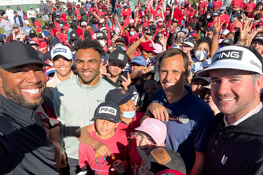 [vc_row][vc_column][vc_video link=”https://youtu.be/iHfjDnEmmEc”][vc_empty_space][vc_column_text css=”.vc_custom_1644371246035{margin-bottom: 0px !important;}”]Tuesday was a special day at the WM Phoenix Open, especially for children of the Valley. More than 600 kids from local elementary schools were allowed to skip class and participate in the R.S. Hoyt Jr. Family Foundation Dream Day benefiting The First Tee of Phoenix. At the TPC Scottsdale Champions Course practice range, the kids met Arizona Cardinals legend Larry Fitzgerald, interacted with local team mascots and participated in golf clinic sponsored by PING to learn the great game of golf from one of the best, Bubba Watson. After the athletes spoke, the kids were treated to a dazzling trick shot show performed by pro golfer Tania Tare. It was a beautiful Scottsdale day that these kids won’t soon forget.[/vc_column_text][mk_gallery images=”34236,34247,34249,34251,34253,34255,34257,34259,34261,34263,34265,34267,34269,34271,34273″ orderby=”rand”][vc_column_text css=”.vc_custom_1644371173606{margin-bottom: 0px !important;}”]